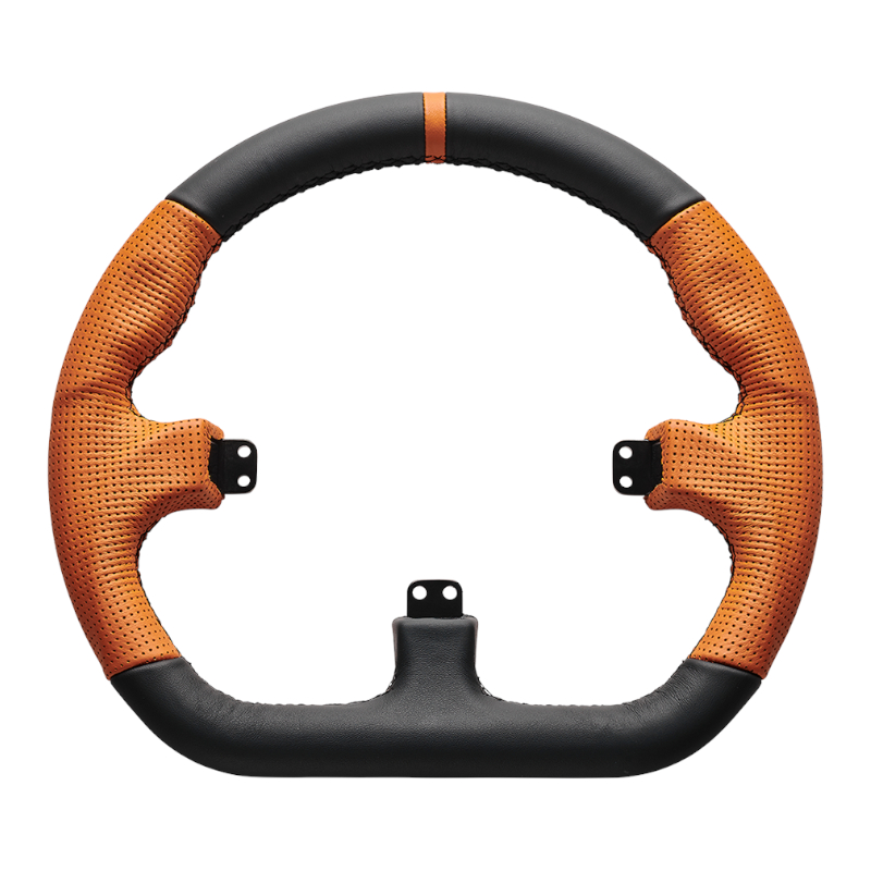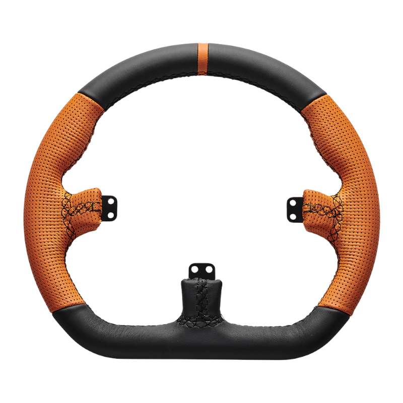 Doświadcz szczytu luksusu w wyścigach sim dzięki naszej ręcznie robionej skórzanej obręczy.Wszechstronny design, płynnie dopasowuje się do preferowanego stylu wyścigowego. Niezależnie od tego, czy jeździsz po gładkich drogach, opanowujesz samochody GT, pokonujesz różne tereny, czy też doskonalisz się w wyścigach, ta felga jest przeznaczona do tego wszystkiego. Wykonana z wysokiej jakości materiałów przypominających te z prawdziwych samochodów sportowych, obręcz ta zapewnia zarówno trwałość, jak i autentyczność. Poczuj doskonałość, ściskając w dłoniach prawdziwą skórę, zanurzając się w precyzji i kunszcie naszych ręcznie szytych skórzanych obręczy.Zamknięty kształt D zapewnia więcej miejsca na nogi, nie pogarszając jednocześnie wydajności i ergonomii.Obręcz ma świetny ergonomiczny kształt uzupełniony wysokiej jakości materiałem skórzanym, który jest perforowany na uchwytach, zapewniając pewny chwyt na kierownicy.Dzięki pomarańczowym uchwytom i centralnemu znacznikowi stanowi stylowy dodatek do Twojej kolekcji kierownic.Ponieważ wszystkie nasze obręcze są wykonane ręcznie, możesz spodziewać się różnic w szwach, rozciągnięciu skóry i wykończeniu na rogach.