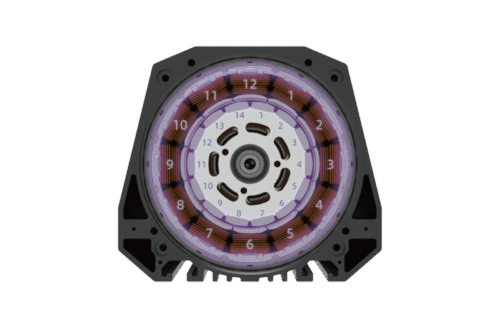 Zastosowanie konstrukcji z podwójnymi skośnymi biegunami, zarówno stojana, jak i wirnika, optymalizuje moment obrotowy, znacznie zmniejszając tętnienia momentu obrotowego, drgania elektromagnetyczne i hałas, co przekłada się na doskonałą wydajność NVH (hałas, wibracje i szorstkość).
