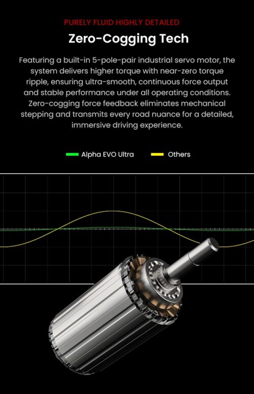Dzięki wbudowanemu, 5-biegunowemu, przemysłowemu serwosilnikowi, system zapewnia wyższy moment obrotowy przy niemal zerowym tętnieniu momentu obrotowego, gwarantując niezwykle płynną, ciągłą pracę siły i stabilną pracę w każdych warunkach. Zerowy system sprzężenia zwrotnego siły eliminuje mechaniczne szarpnięcia i przekazuje każdy niuans drogi, zapewniając szczegółowe, wciągające wrażenia z jazdy.