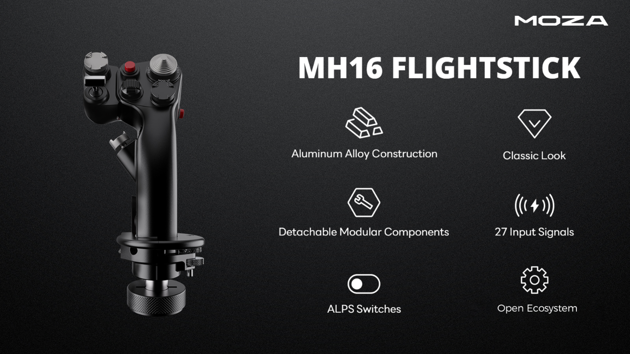 Łącząc w sobie klasykę i innowację z zachowaniem wysokiej wierności odwzorowania, drążek sterowy MH16 zawiera odłączane moduły rozszerzeń, aby zoptymalizować potrzeby użytkownika, zapewniając większą liczbę przełączników, które są niezwykle łatwe w instalacji i demontażu dzięki połączeniom Pogo Pin, co pozwala uniknąć bałaganu w okablowaniu i gwarantuje całkowicie stabilną pracę.