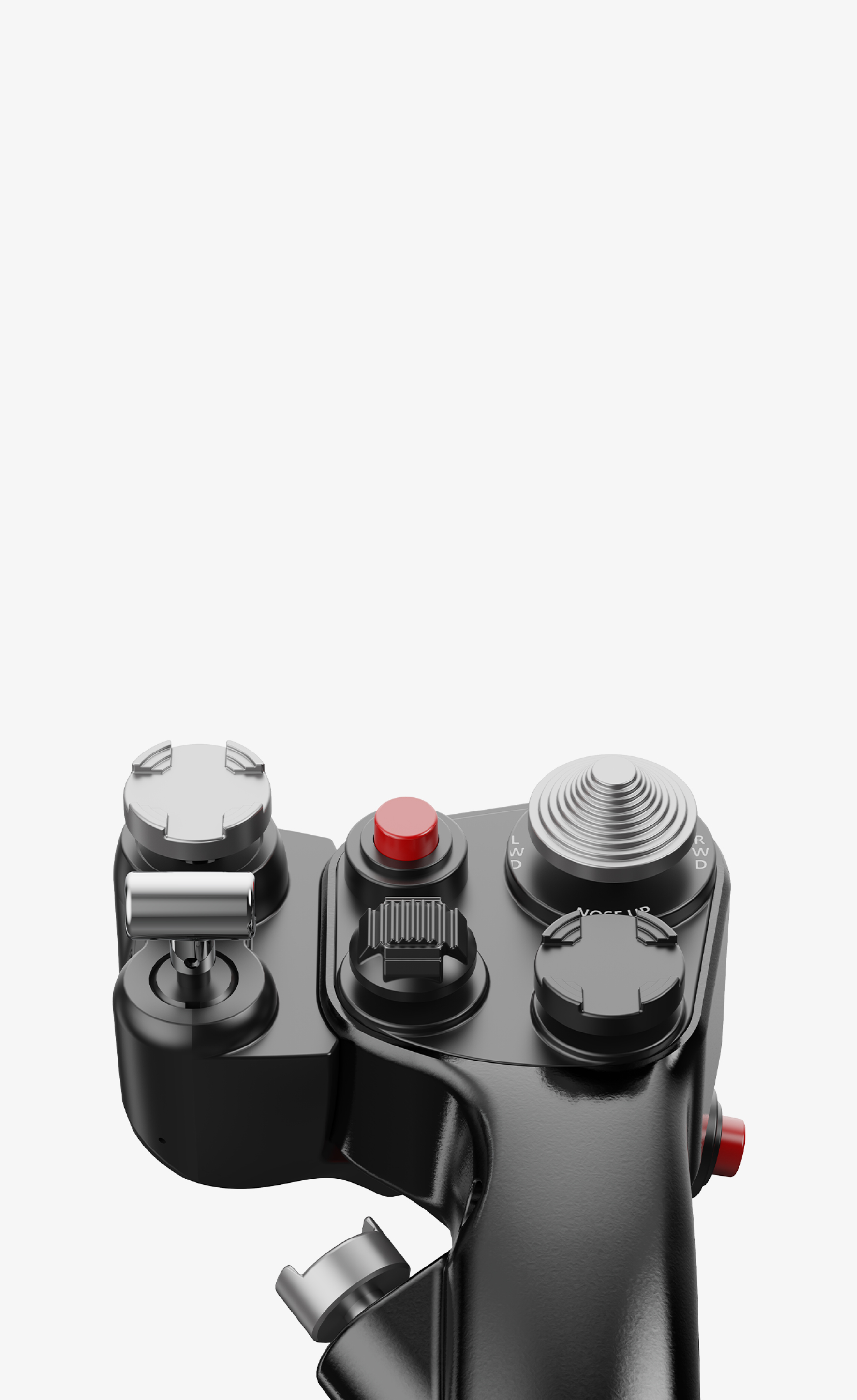 Każdy szczegół, od projektu uchwytu po układ przycisków, ma na celu osiągnięcie doskonałego realizmu, dokładnie odtwarzając całkowicie metalowy drążek sterowy oryginalnego samolotu. Wykonany ze stopu aluminium klasy lotniczej z lakierem klasy samochodowej, zapewnia trwałość, doskonałe osiągi mechaniczne i stabilność termiczną.