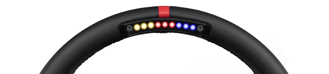 - Pasek RevLED zintegrowany z obręczą, pokazujący obroty silnika (w zależności od gry)