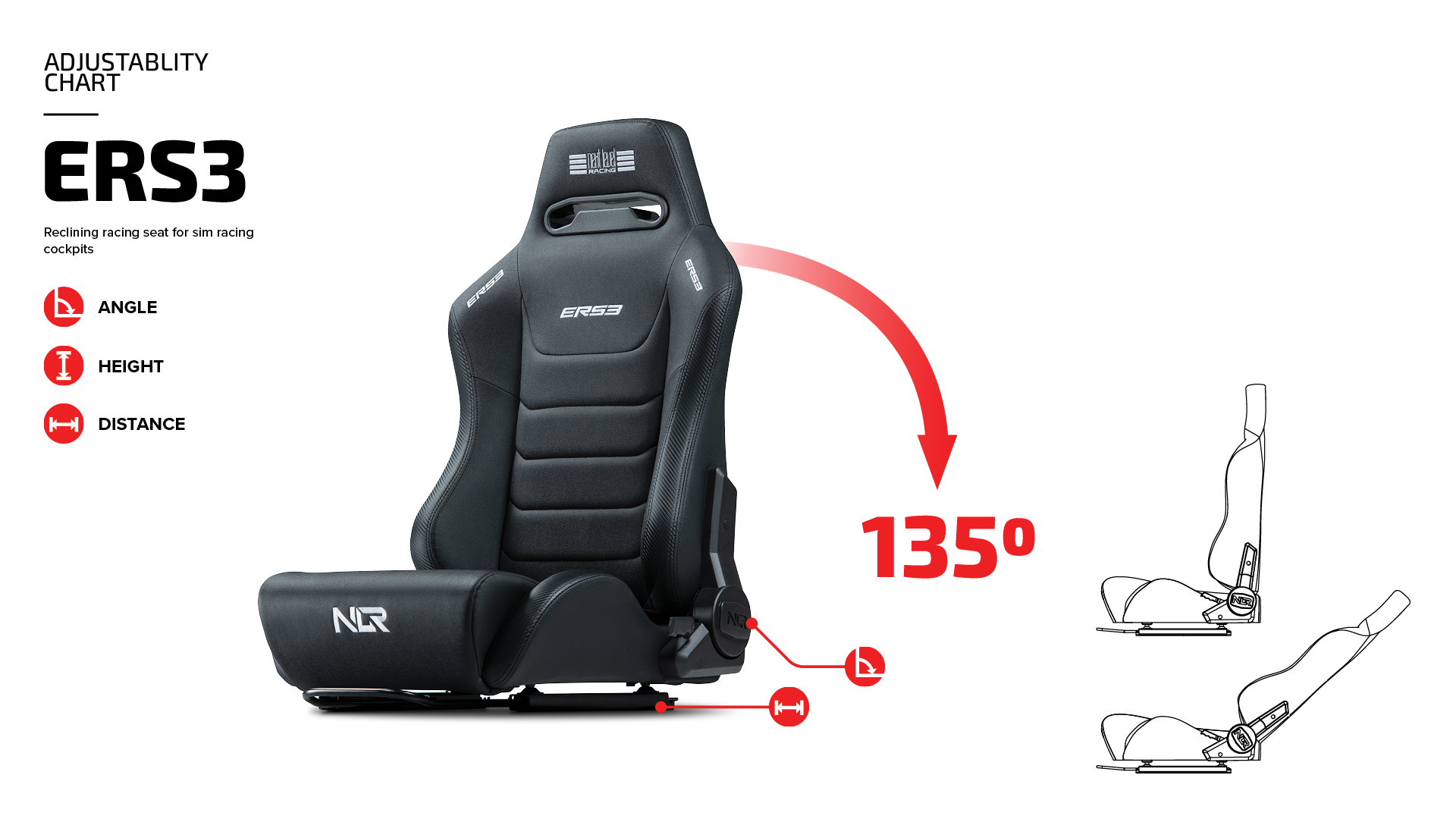 Zaprojektowany dla społeczności wyścigowej, ERS3 zapewnia konstrukcję fotela do sportów motorowych z regulacją kąta, która pozwoli użytkownikowi uzyskać dokładnie pożądaną pozycję przez długie godziny.