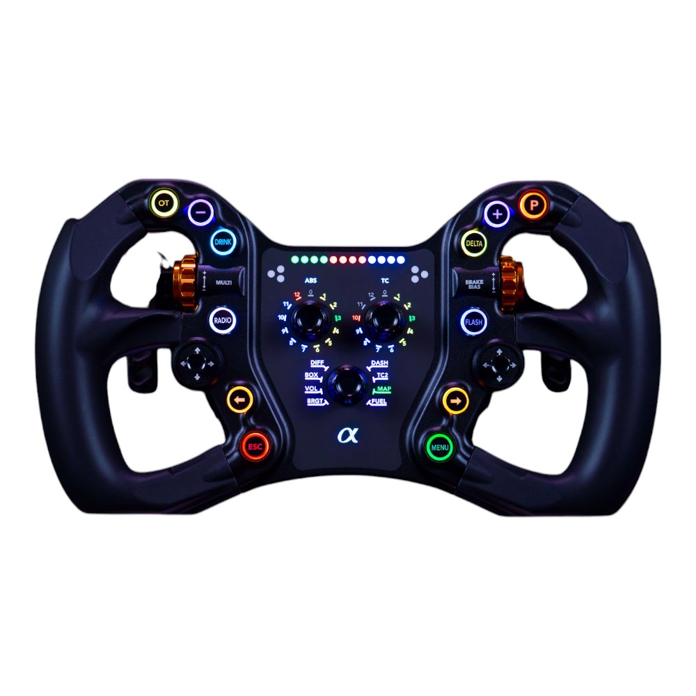 Zaprojektowana i wyprodukowana w Bawarii, przedstawiamy Państwu kierownicę Alpha firmy BavarianSimTec. Projekt i wykonanie Alpha łączą w sobie ergonomię, funkcjonalność i wysokiej jakości materiały.Projekt i wykonanie Alpha łączą w sobie ergonomię, funkcjonalność i wysokiej jakości materiały. Obudowa, w tym wkładki uchwytu, jest frezowana CNC z litego bloku aluminium klasy lotniczej 6061, aby zapewnić maksymalną sztywność skrętną. Innowacyjna konstrukcja dwuskorupowa (średnica 295 mm, szerokość 1200 g) z tylnymi zapięciami zapewnia aksamitną, idealną powierzchnię i estetycznie przyjemny przód o jednolitym wyglądzie. Wygląd premium jest dodatkowo podkreślony przez precyzyjnie grawerowane laserowo loga i oznaczenia. Cały projekt emanuje precyzją i perfekcją, harmonijnie łącząc funkcjonalność i styl.Uchwyty Alpha, wykonane z 60A antystatycznego silikonu, zostały zaprojektowane tak, aby poprawić ergonomię i zapewnić wygodny chwyt. Zaprojektowane tak, aby zapewnić przyjemne wrażenia dotykowe, płynnie dopasowują się do naturalnej pozycji dłoni, minimalizując zmęczenie podczas długich podróży. Uchwyty te gwarantują niezrównany chwyt w każdych warunkach, niezależnie od tego, czy są w rękawiczkach, czy bez. Dzięki innowacyjnemu 13-stopniowemu nachyleniu kciuka zapewniają lepszą kontrolę podczas szybkich manewrów. Wystarczająco przestronne, aby pomieścić większe dłonie, nie wydając się nieporęczne, zachowują smukły i opływowy profil. Wyrafinowany techniczny projekt uchwytów harmonijnie integruje solidną moc i estetykę kierownicy, wzmacniając ogólną wytrzymałość i elegancję zespołu kierownicy.