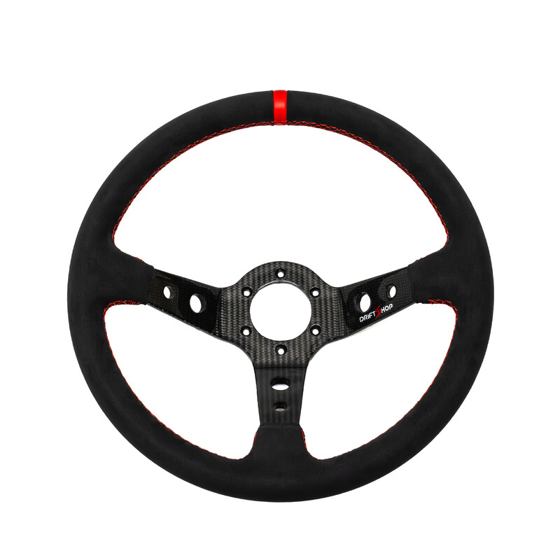 DriftShop Premium Steering Wheel (90 mm Dish), Alcantara, Carbon Spokes