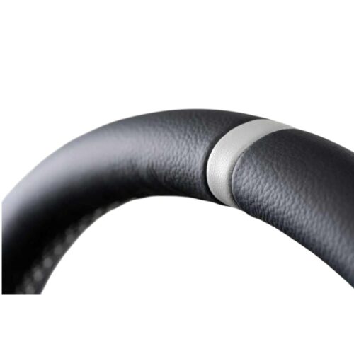 Wielofunkcyjna, całkowicie okrągła kierownica z ergonomicznymi uchwytami. Gładka skóra jest trwała i wygodna, z jasnoszarymi przeszyciami i jasnoszarym paskiem pośrodku. Zaprojektowano ją tak, aby idealnie pasowała do modułu Podium Button Endurance (sprzedawanego oddzielnie).