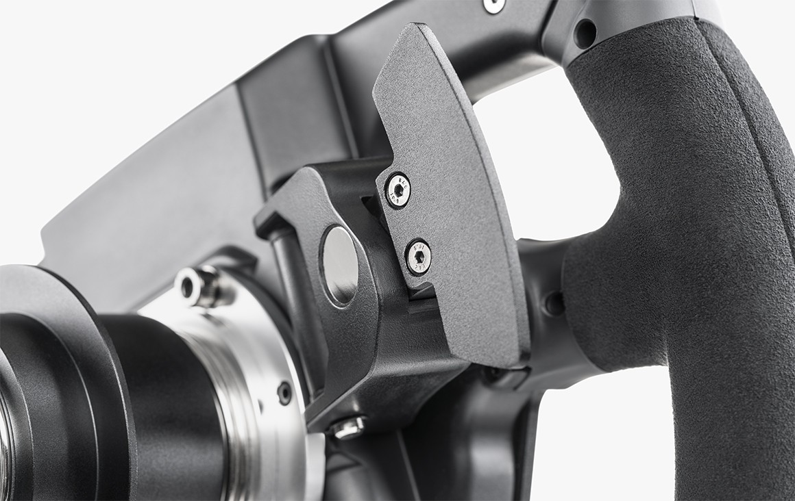 Wymień standardowe łopatki magnetyczne na moduł Podium Advanced Paddle (sprzedawany oddzielnie), aby uzyskać dodatkowe dane wejściowe i łopatki analogowe. Wymienny szybkozłącze oznacza, że kierownica jest gotowa na przejście na zupełnie nowy system QR2 (wkrótce).
