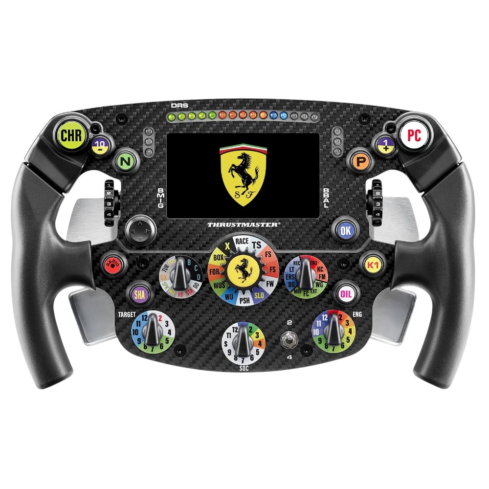 Z dumą reprezentuj Scuderię z dodatkiem Formula Wheel Add-On Ferrari SF-25 Edition: oficjalną repliką kierownicy Ferrari SF-25 w naturalnych rozmiarach, wyposażoną w interaktywny wyświetlacz, diody LED, przyciski i enkodery z autentycznymi oznaczeniami, a także niezwykle czułe łopatki zmiany biegów T-Chrono Paddles.