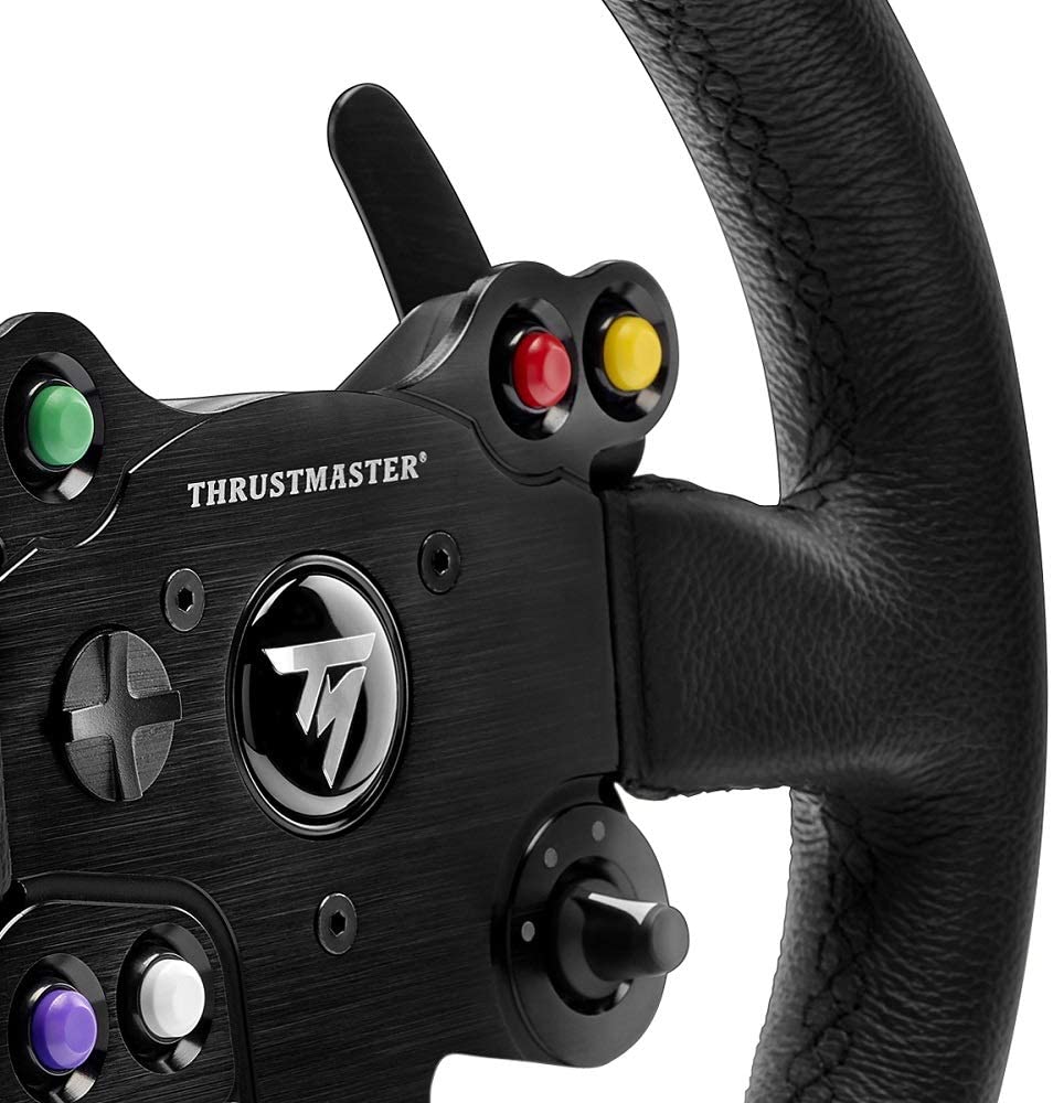 SKÓRA — MATERIAŁ NAJWYŻSZEJ KLASY DLA MAKSYMALNEGO KOMFORTUKierownicę TM Leather 28 GT Wheel Add-On firmy Thrustmaster wykonano z materiałów szczególnie wysokiej jakości, wśród których wyróżniają się skóra i metal.Podobnie jak w rozwiązaniach stosowanych przez producentów w wyższych modelach samochodów, obszycie ze skóry pokrywa profilowany poliuretanowy pierścień i wewnętrzną obręcz stalową. Dzięki temu kierownica jest bardziej komfortowa w dotyku oraz lepiej przekazuje wrażenia związane z jazdą, a w szczególności efekty siłowego sprzężenia zwrotnego.Drugim obok skóry wyróżniającym się materiałem jest szczotkowany metal (nadający kierownicy prawdziwie sportowy wygląd i charakter), z którego wykonana jest płyta środkowa oraz łopatki sekwencyjnej zmiany biegów.