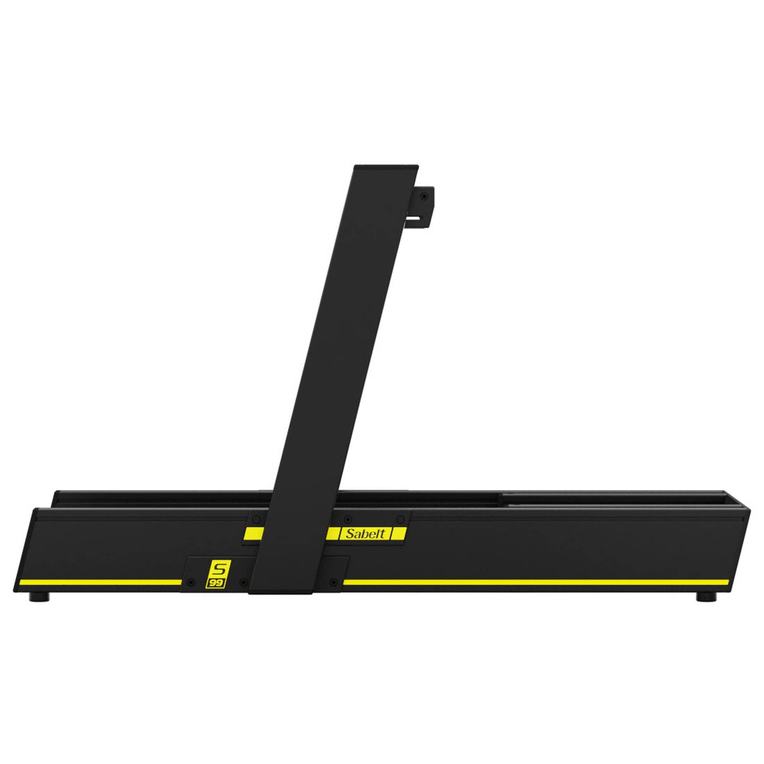 - Boczne płyty wykonane z aluminium CNC o grubości 10 mm, malowane proszkowo z matowym żółtym nadrukiem Sabelt.