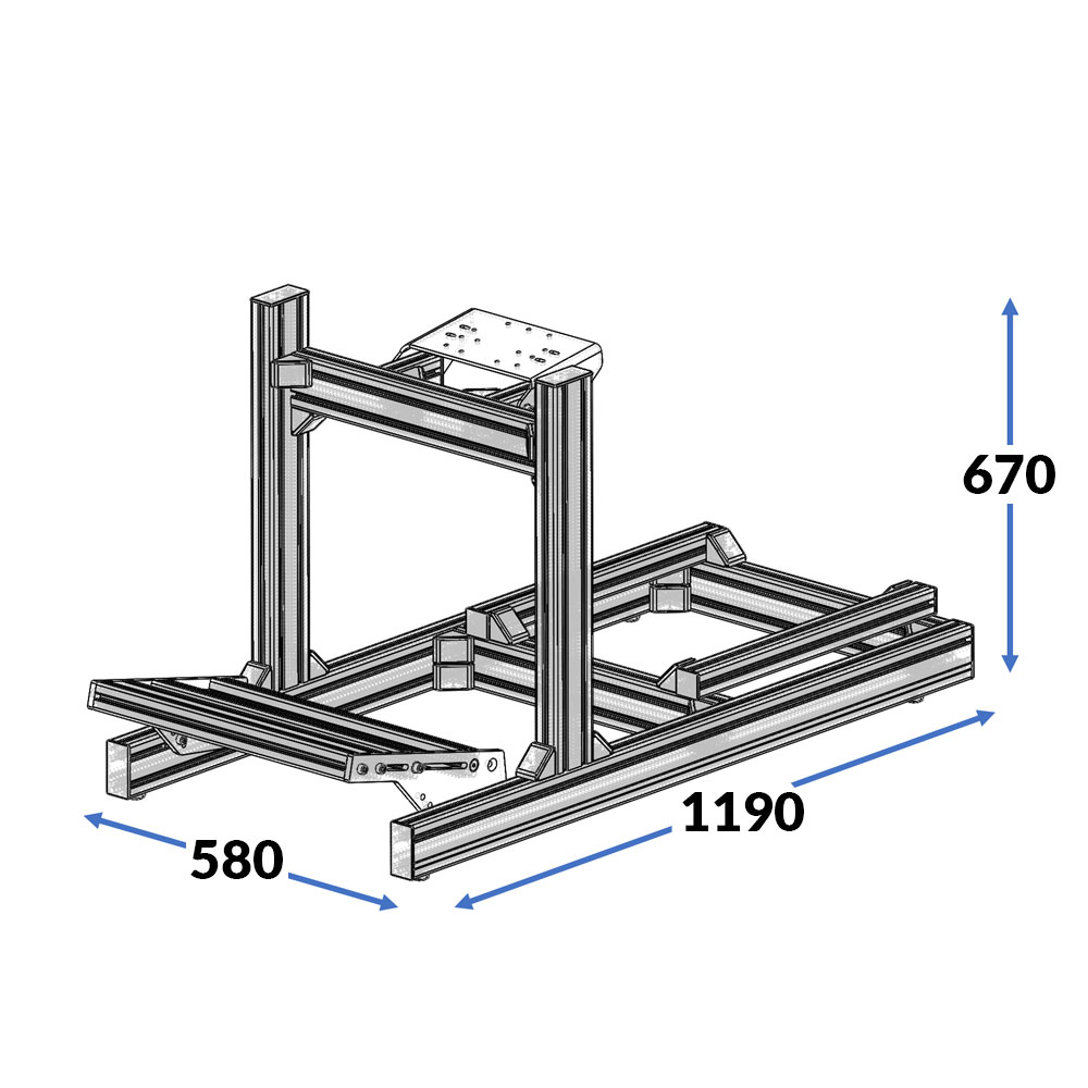 Ten zestaw jest przyszłą bazą dla tysięcy kilometrów , które pokonasz dając upust swojej sim racingowej pasji. Zbudowany głównie z profili aluminiowych o wymiarach 80×40 mm, charakteryzuje się ogromną możliwością regulacji, oferując jednocześnie solidność i sztywność, jakiej oczekujesz od zestawu symulacyjnego.