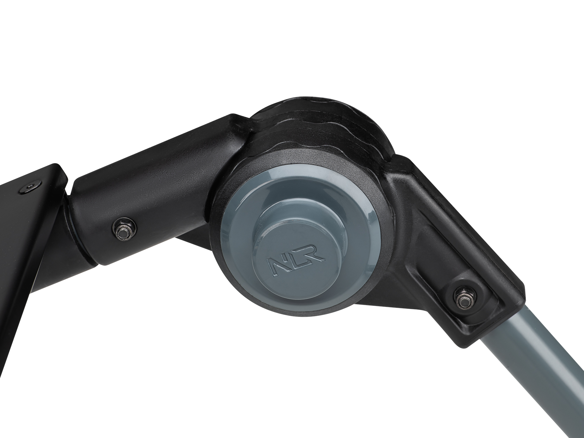 Opatentowane piasty Next Level Racing® są projektowane od ponad dwóch lat, aby zapewnić maksymalną trwałość i stabilność. Każda piasta jest w stanie wytrzymać siłę 150 kg, zapewniając sztywną konfigurację wyścigową. Piasty te oferują również szeroki zakres regulacji kąta, co ułatwia przełączanie między pozycjami wyścigowymi Formuły i GT. Mechanizm szybkiego zwalniania zapewnia szybkie przejścia, a kokpit można złożyć do przechowywania bez konieczności wyjmowania elektroniki.