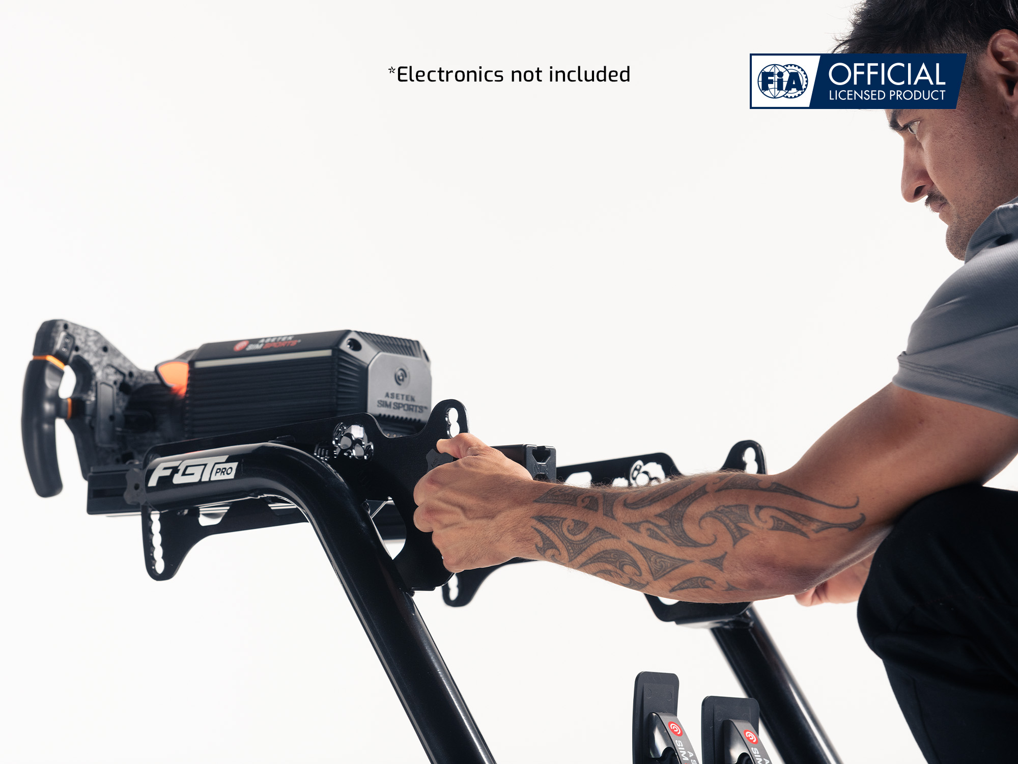 Zbudowany z wyścigowej ramy rurowej Ø50 mm ze stali i wzmocnionym usztywnieniem środkowej ramy, F-GT Pro jest najsztywniejszym okrągłym kokpitem rurowym w swojej klasie. Zaprojektowany, aby wytrzymać pełną siłę silników Direct Drive do 25 NM i pedałów o dużej wytrzymałości, zapewnia solidną platformę, aby zwiększyć wydajność. Dzięki dodatkowym płytom konstrukcyjnym i wydłużonym wytłaczaniom kokpit pomieści również wyższych użytkowników bez uszczerbku dla wytrzymałości lub immersji.