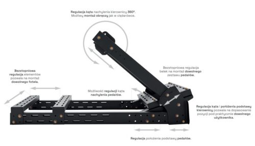 i osprzęt - Niezależna regulacja pozwala na montaż dowolnych pedałów, kierownicy/bazy i fotela