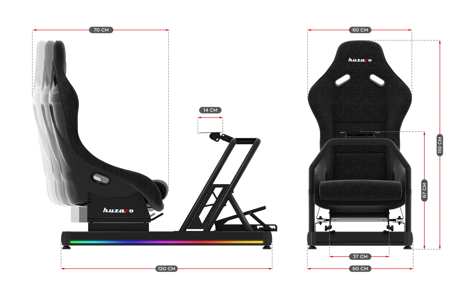 - Stelaż jest odpowiedni dla każdego wzrostu: dzięki możliwości przesuwania fotela przód – tył z łatwością dopasujesz go do swoich potrzeb!
