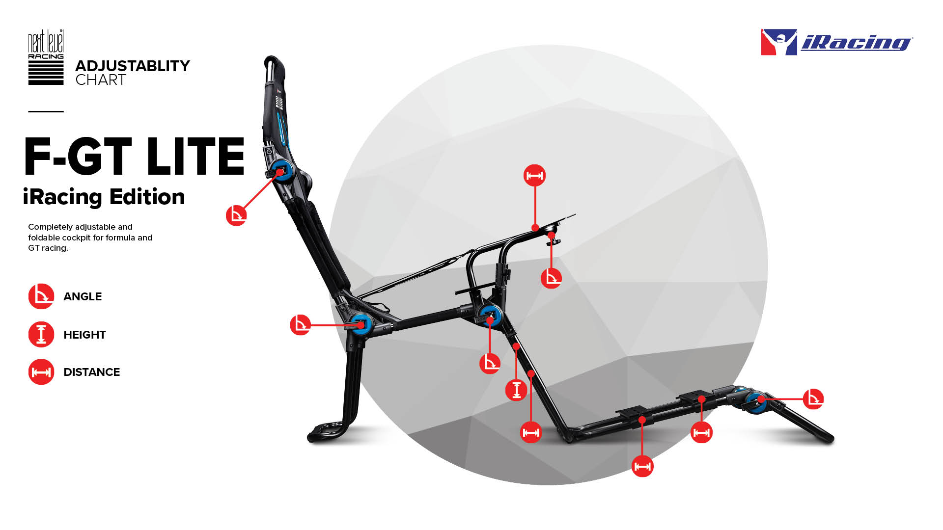 Przedstawiamy nasz pierwszy przenośny kokpit wyścigowy, Next Level Racing F-GT Lite iRacing . Rewolucyjna konstrukcja pozwala na zajęcie prawdziwej pozycji do wyścigów zarówno Formuły i GT w zaciszu własnego domu. Dzięki swojej minimalistycznej konstrukcji kokpit F-GT Lite iRacing jest idealnym kokpitem dla każdego użytkownika posiadającego ograniczoną przestrzeń. Dzięki nowym innowacyjnym przegubom Next Level Racing użytkownik może szybko zmienić pozycję między GT i Formuła, aby znaleźć tę najwygodniejszą.