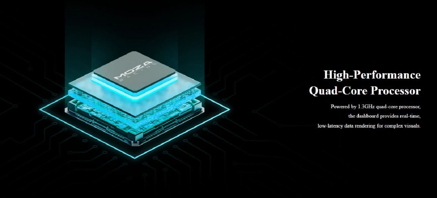 Dashboard MOZA CM2 jest wyposażony w 5-calowy pojemnościowy ekran dotykowy o wysokiej rozdzielczości 720P (1280×720) z częstotliwością odświeżania 60 Hz, dzięki czemu obraz jest responsywny i żywy.