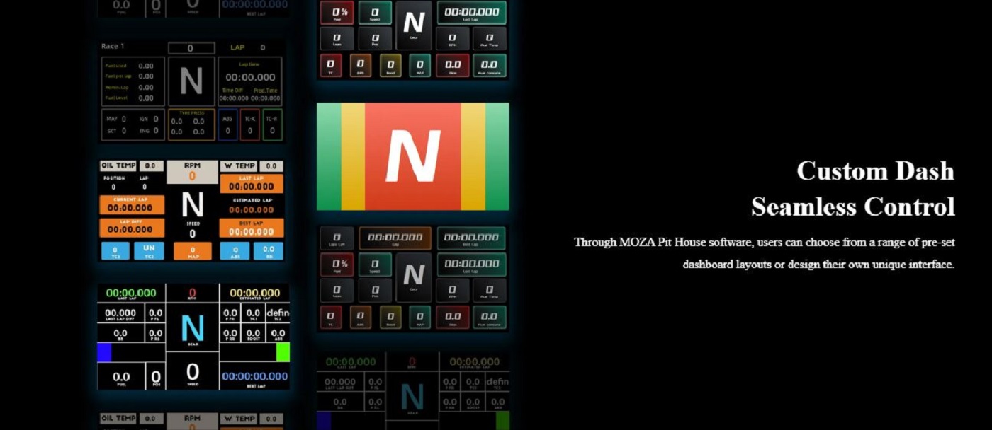 Dzięki oprogramowaniu MOZA Pit House użytkownicy mogą wybierać spośród wielu predefiniowanych układów pulpitu nawigacyjnego lub zaprojektować własny, unikalny interfejs.