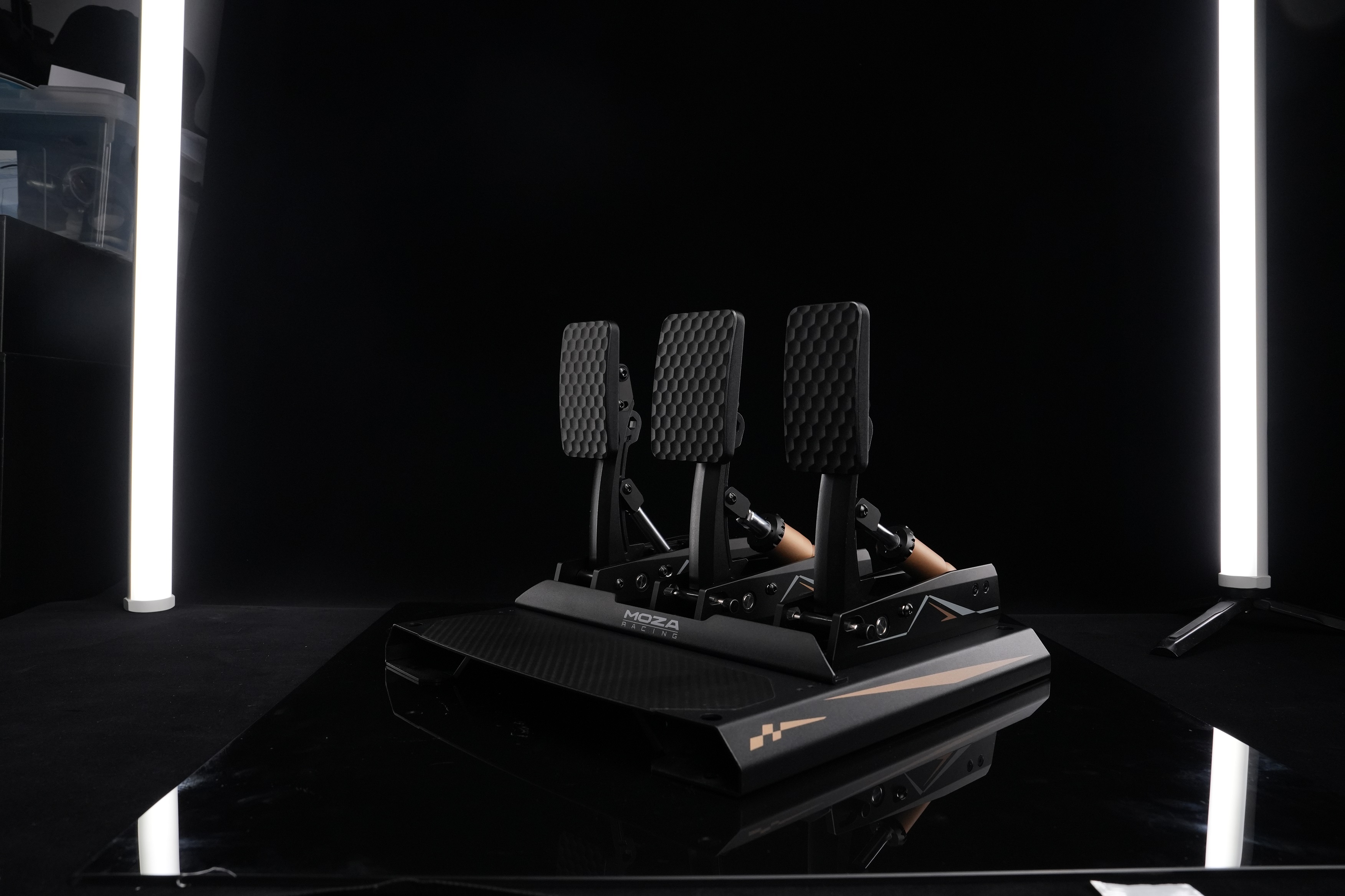 Podłączony jest również hamulec ręczny i skrzynia biegów MOZA.