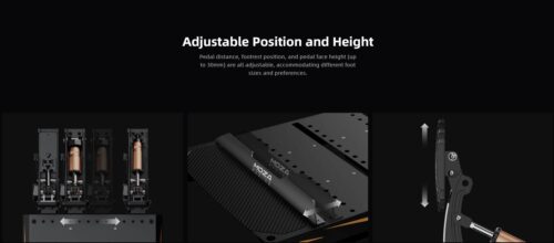 Odległość pedałów, położenie podnóżka i wysokość pedału (do 30 mm) są regulowane, co pozwala na dostosowanie ich do różnych rozmiarów stóp i preferencji.