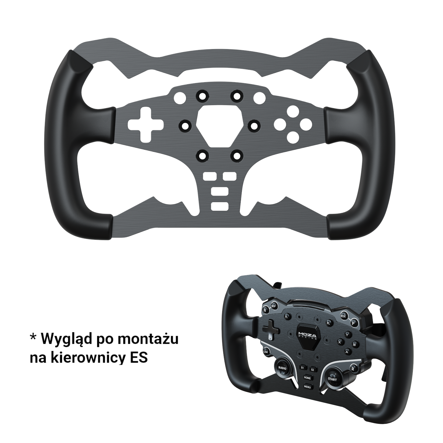 Dedykowana, fabryczna nakładka Formuła dla kierownicy MOZA R5 ES Wheel ( która jest częścią zestawu MOZA R5 Bundle ) oraz występuje jako osobny produkt ( MOZA ES Steering Wheel RS035 ).