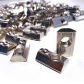 Te nakrętki z rowkiem T są wyposażone w kulkę sprężynującą, która zapobiega ich wysuwaniu się z profili. Obydwa można wsunąć z boku lub wsunąć do połowy. Mają podwyższoną część środkową, dzięki czemu gwint zawsze znajduje się pośrodku otworu szczeliny.