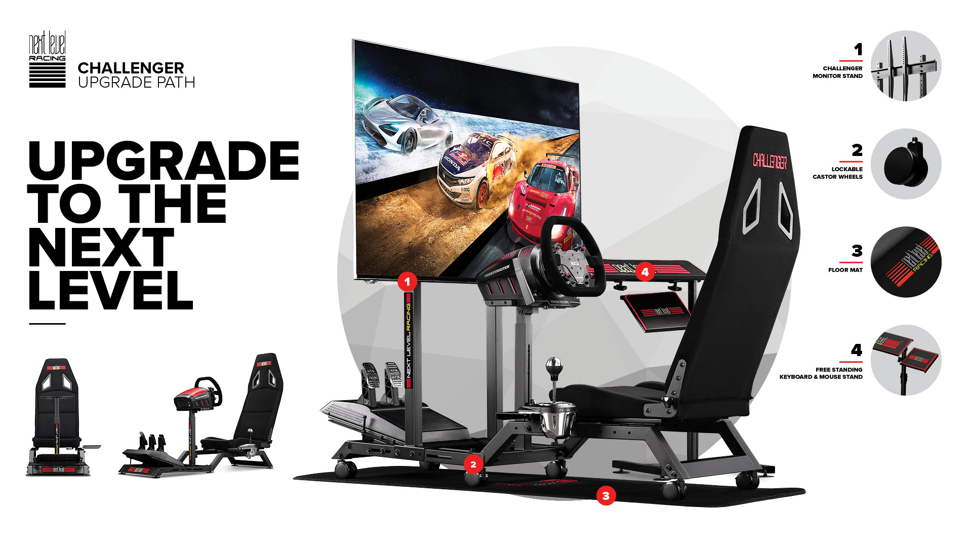 Kokpit wyścigowy NEXT LEVEL RACING Challenger NLR-S016Przynieś tor wyścigowy do swojego domu dzięki kokpitowi symulatorów wyścigowych Next level Racing Challenger, który jest idealnym kokpitem do wejścia w świat wyścigów samochodowych! Kokpit Challenger to idealne rozwiązanie do zamontowania kierownicy, pedałów, a nawet dźwigni zmiany biegów w autentycznej pozycji wyścigowej, aby zapewnić prawdziwe wrażenia z jazdy samochodem wyścigowym w zaciszu własnego domu. Minimalistyczna konstrukcja kokpitu Challenger zapewnia sztywne i realistyczne wrażenia z wyścigów bez ogromnej powierzchni.