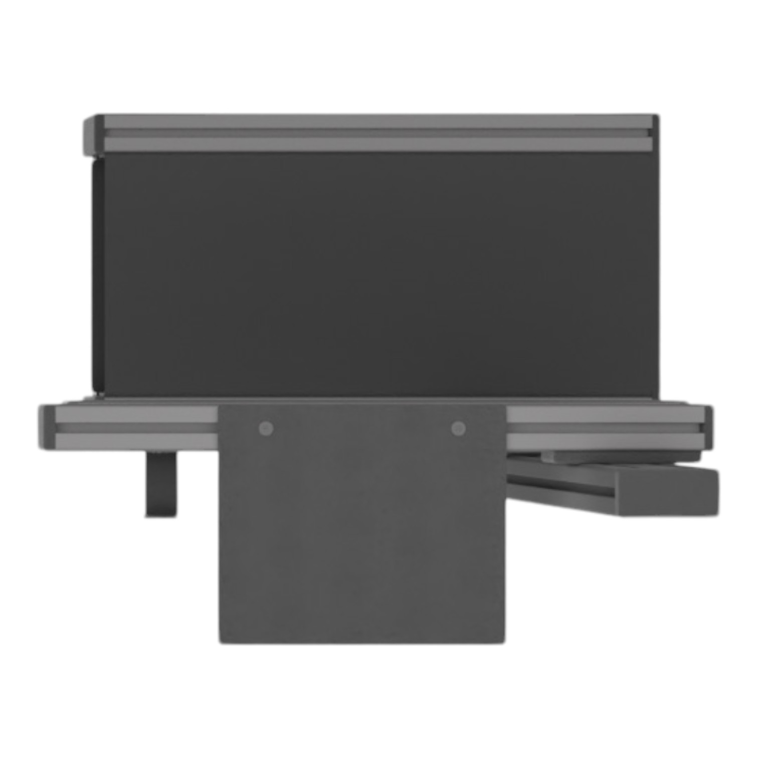 profile aluminiowe, płyty aluminiowe i stalowe, zaślepki, osłony gniazd, gumowe nóżki, 1 otwór na słuchawki, 1 płytka pod mysz, elementy mocujące i śruby.