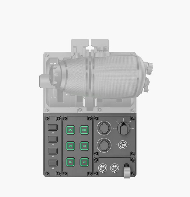 Kompaktowy, a zarazem wydajny panel z 23 fizycznymi elementami sterującymi, w tym 10 przyciskami wielofunkcyjnymi, 3 pokrętłami, 3 przełącznikami i dedykowaną dźwignią podwozia. Sześć przycisków z podświetleniem RGB w 16,7 mln kolorów zwiększa funkcjonalność i immersję.