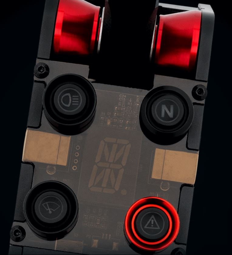Wbudowany wyświetlacz LED z 4 przyciskami do włączania biegu neutralnego, wycieraczek, świateł przednich i innych funkcji.