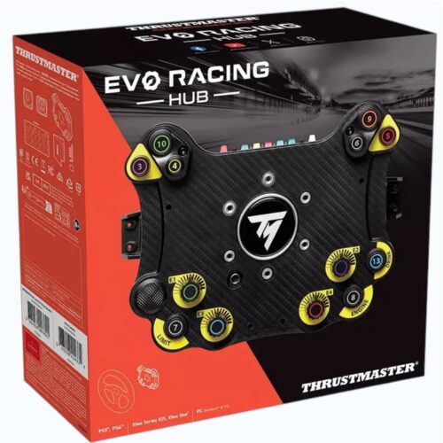 EVO Racing Hub to centralny element gamy EVO Racing — modułowy panel sterowania, który można dostosować do swoich potrzeb za pomocą obręczy i łopatek zmiany biegów, tworząc kierownicę marzeń. Wyposażony w 25 przycisków akcji (w tym 4 enkodery), 7 diod LED i moduły Mag-Shift do łopatek zmiany biegów, został stworzony z myślą o osiągach.