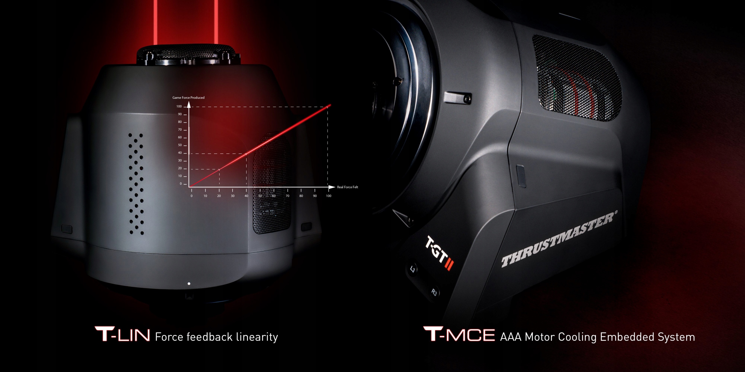 40-watowy silnik kierownicy T-GT II wyróżnia się idealnie liniowym siłowym sprzężeniem zwrotnym i wyjątkową prędkością działania (momentem dynamicznym) — od długich łuków o stałym promieniu po szczególnie ostre szykany.Wysoka moc silnika przekłada się na prędkość działania, która pozwala generować imponująco dynamiczne i mocne efekty. Ponadto dzięki swojej prędkości silnik na bieżąco przekazuje graczowi szybsze i mocniejsze reakcje, udoskonalone dzięki zastrzeżonej technologii T-LIN firmy Thrustmaster.