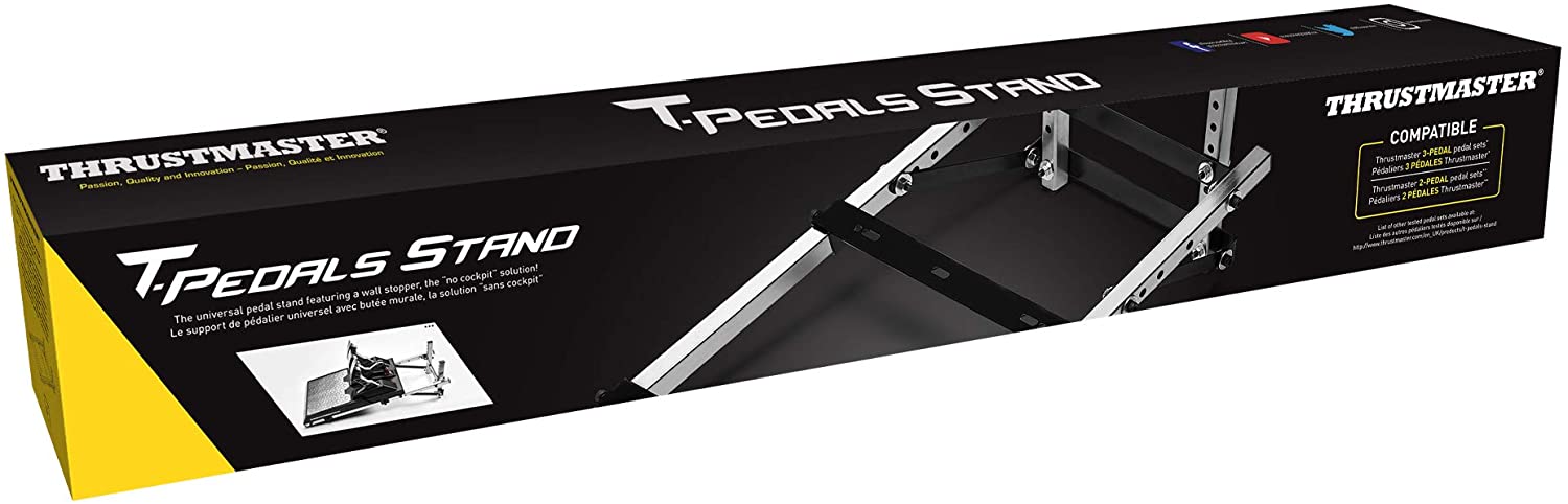 - Stojak jest kompatybilny zestawami pedałów: T3PA / T3PA-PRO / T-LCM / zestawy dwupedałowe Thrustmaster / zestawy trzypedałowe Logitech