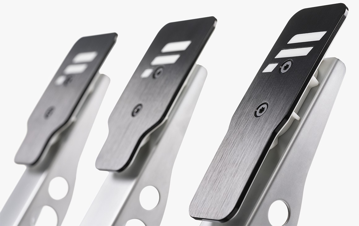 Zmień wygląd pedałów CSL dzięki trwałym, anodowanym aluminiowym powierzchniom pedałów (sprzedawanym oddzielnie). Powierzchnia pedału przepustnicy jest wydłużona, co pozwala na wygodną technikę pięty i palców.
