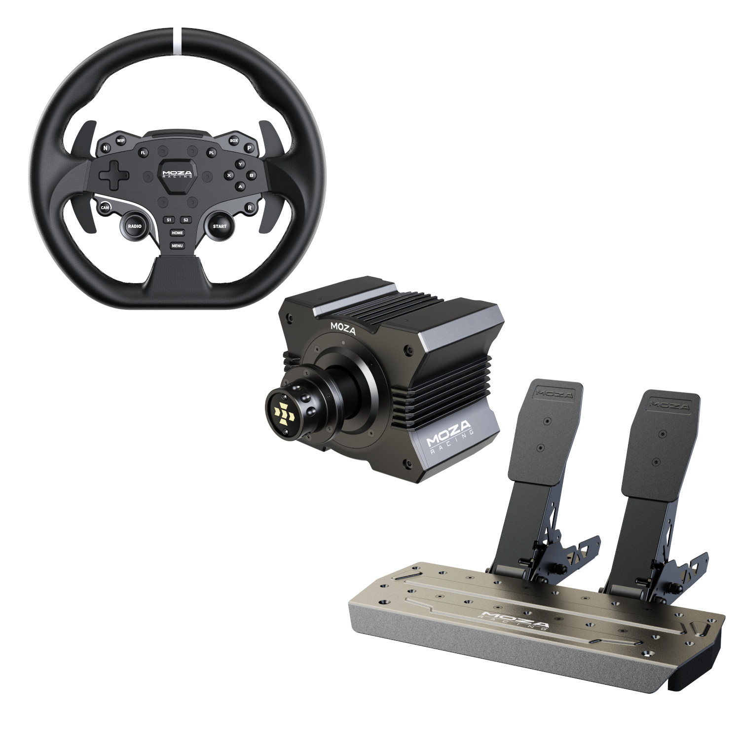 MOZA R5 Bundle Direct Drive to kompletny zestaw do rozpoczęcia przygody z Sim Racing’iem bądź wejścia w świat kierownic z wyższej półki. Składa się on z bazy kierownicy z napędem bezpośrednim, z 28cm obręczą i dwoma pedałami. Baza MOZA R5 charakteryzuje się mocnym momentem obrotowym o wartości 5,5 Nm, dzieki któremu poczujesz przeciążenia niedostępne dla konstrukcji opartych na paskach i zębatkach, które stosuje konkurencja. Lekka i kompaktowa konstrukcja ze stopów aluminium klasy lotnicznej skrywa w sobie całkiem dużo mocy i możliwości przy nienagannej kulturze pracy i płynności działania.