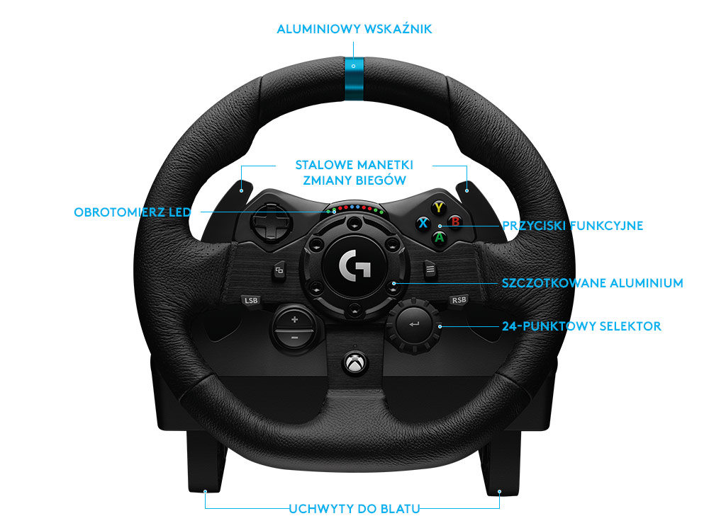 Klasyczny design, ale zmodernizowany. Nowe kolory, wysokiej jakości szczotkowany metal, skórzane szwy w stylu samochodowym i metalowe pedały nadają kierownicy G923 profesjonalny wygląd.